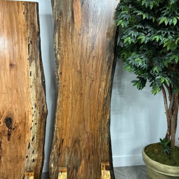 Perfect for creating a dining table, desk, or statement piece. The slab requires further processing including flattening, sanding, and finishing depending on the final use.