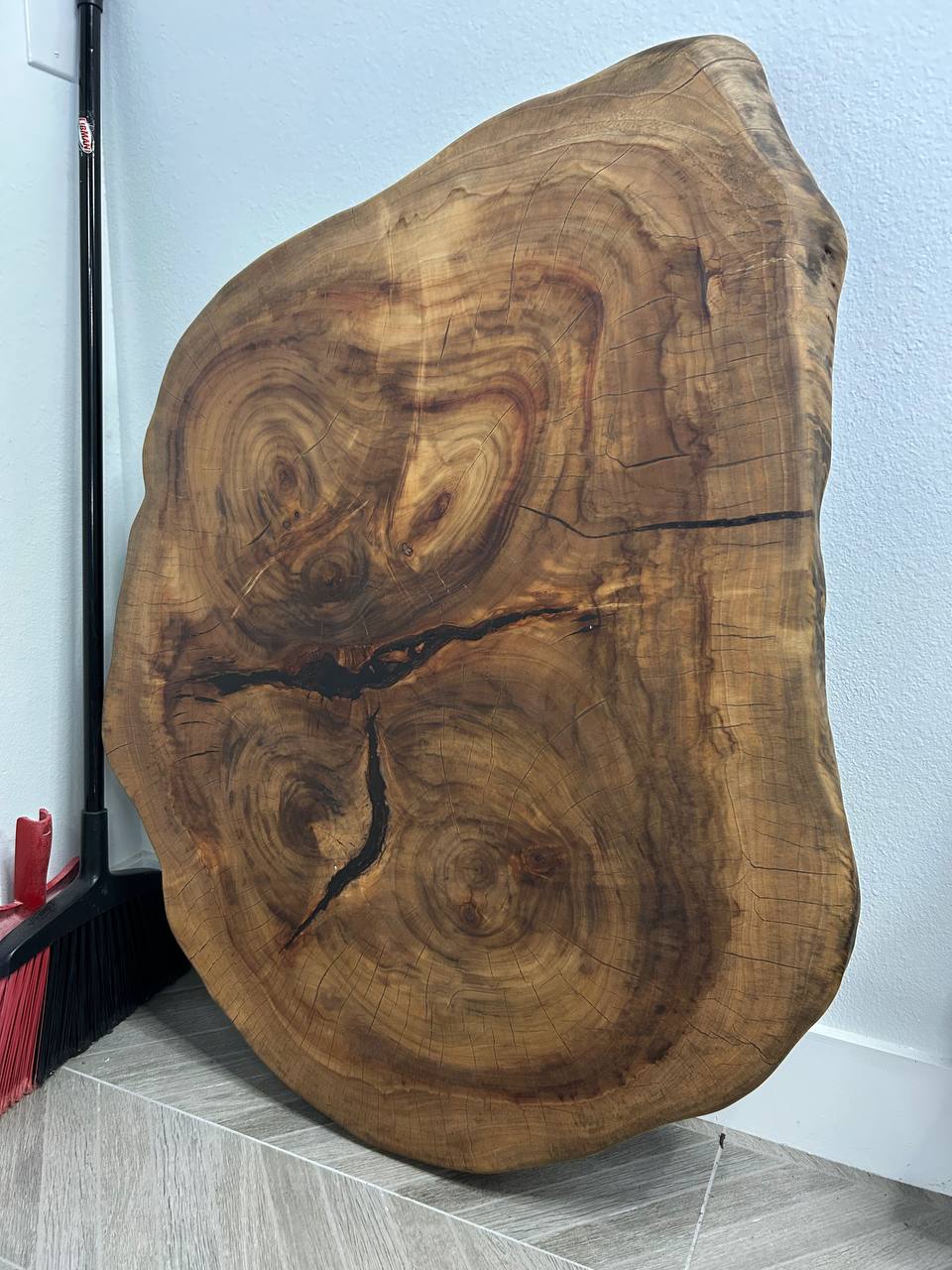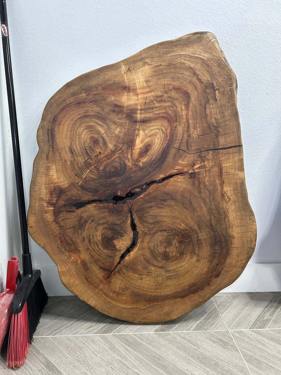 The slab has a central crack and natural voids, making it ideal for epoxy work or leaving in raw natural form. Perfect for coffee tables or decorative furniture pieces.