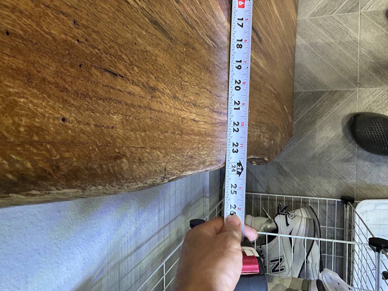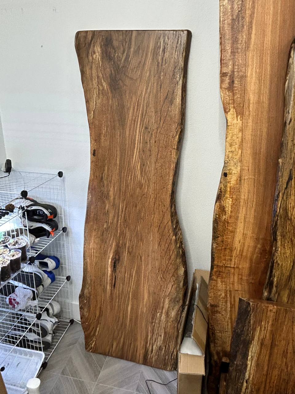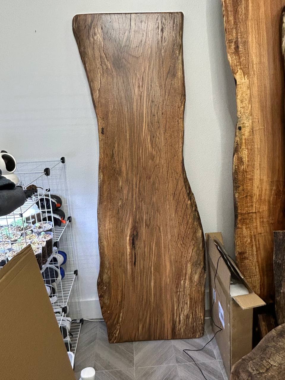 Sourced from Florida hardwood, this slab is suitable for a variety of applications including tabletops, desks, or decorative statement pieces. Its proportions make it especially versatile for modern or rustic interiors.