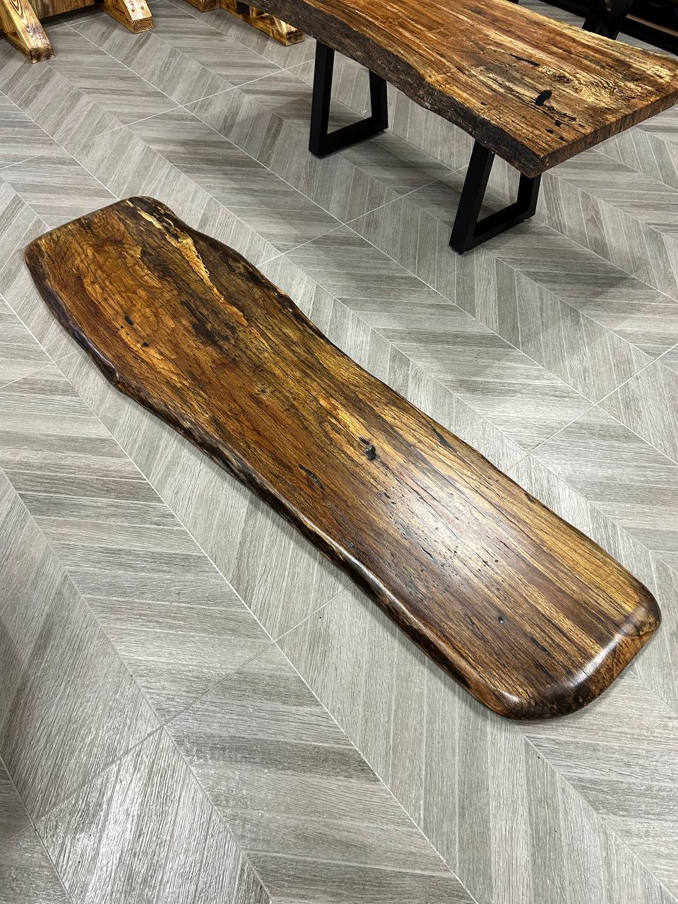 This water oak live edge slab features a narrow, elegant profile with strong grain movement and natural edge lines. Each piece is unique, preserving authentic wood character with tonal variation and natural imperfections.
