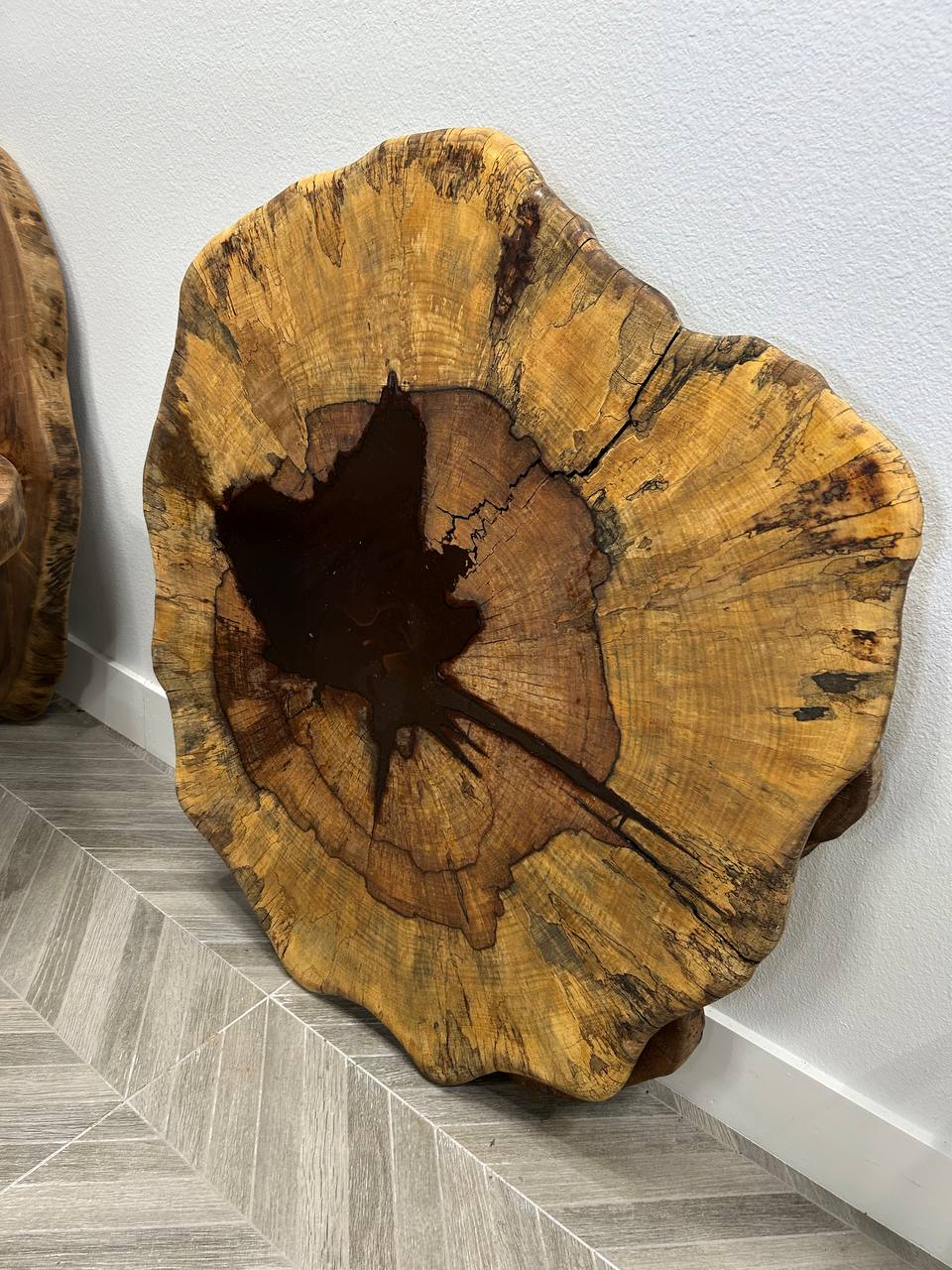• Features: Organic shape, strong center figure, natural cracks, visible growth rings, one-of-a-kind slab