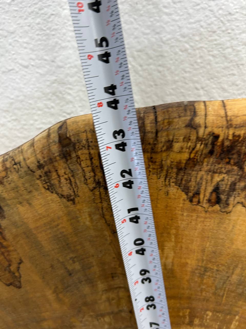 With dimensions of 44 × 41 inches, this slab has a wide, almost full-round footprint, making it ideal for a balanced coffee table or statement centerpiece. The cross-cut reveals natural growth rings and a highly expressive central zone with darker coloration and natural voids, creating a strong focal point.